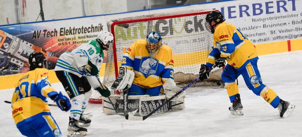Von der ersten Minute an zeigte sich der Gastgeber aggressiv und fokussiert. Sie übernahmen das Kommando und dominierten das erste Drittel über weite Strecken klar. Mit beeindruckenden Pass-Stafetten setzten sie den Gegner immer wieder unter Druck und spielten ihn phasenweise an die Wand. Auch in der Defensive hatte man mit Goalie Rene Baumann einen verlässlichen Rückhalt, der bei mehreren hochkarätigen Chancen der Zauchner zur Stelle war.