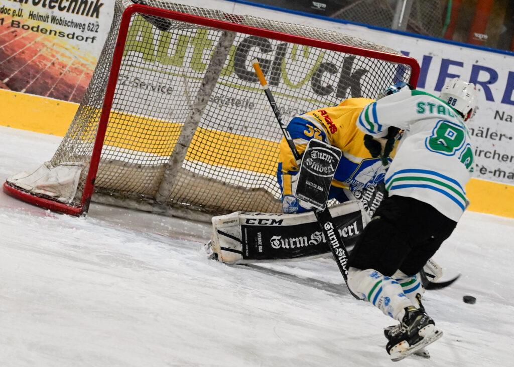 Im zweiten Abschnitt drehten die Gäste jedoch auf und fanden deutlich besser ins Spiel. Durch einige Unkonzentriertheiten der Gastgeber nutzten sie ihre Chancen eiskalt aus, was die Begegnung wieder völlig offen machte. In einem Schlüsselmoment parierte Goalie Baumann sogar einen Penalty und bewahrte sein Team vor einem möglichen Rückstand.