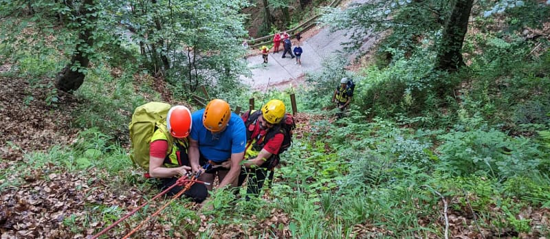 Die Bergrettung eilte zur Hilfe und versorgte den Verunglückten zunächst medizinisch. Anschließend wurde dem Patienten ein Klettergurt angelegt, um ihn vor einem erneuten Absturz zu schützen. Zwei Bergretter seilten den Mann über das Steilgelände auf die darunter liegende Straße ab, von wo aus er der Rettung übergeben wurde. Der gesamte Rettungseinsatz dauerte bis 17.30 Uhr, als der Urlaubsgast sicher gerettet war.